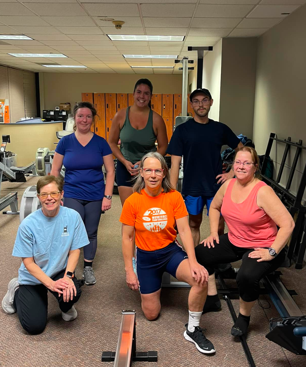 Practices focus on a blend of strength, flexibility, and endurance workouts designed to enhance on-water rowing performance. Strength training is a key component. Our program targets muscles often neglected in rowing to help reduce injury risk.