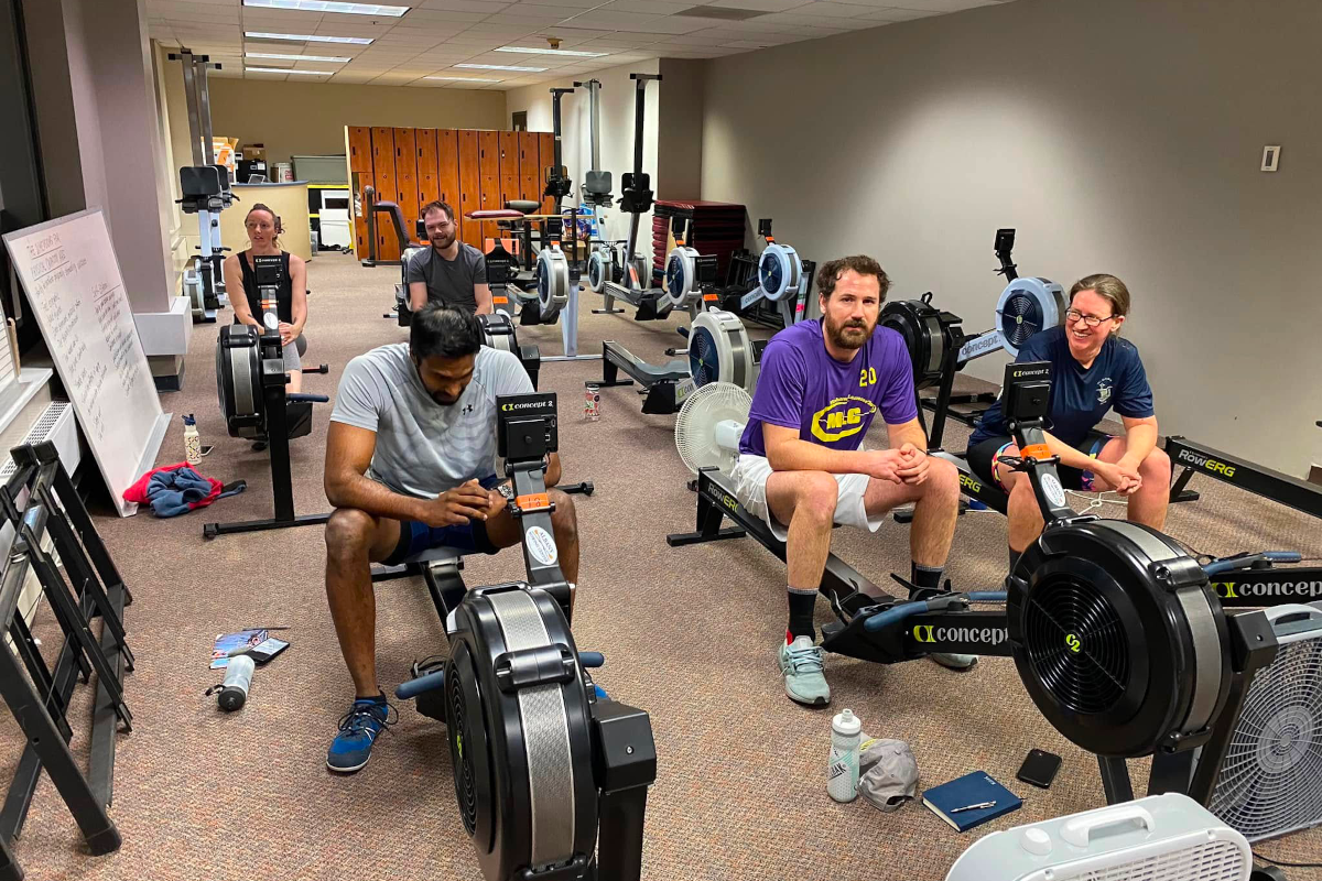 Practices at Omni Fitness Center feature an array of equipment, including erg sliders that mount rowing machines on dynamic slides for a more immersive experience. Sliders closely simulate on-water rowing with back-and-forth motion, improving technique through quicker catches, better leg-arm coordination, and fluid strokes for stronger performance. They reduce physical stress at turnaround points to lower injury risk in long sessions, while making workouts more engaging. For teams, connecting ergs mimics a synchronized boat, boosting cohesion and core muscle use as you catch and pull together.